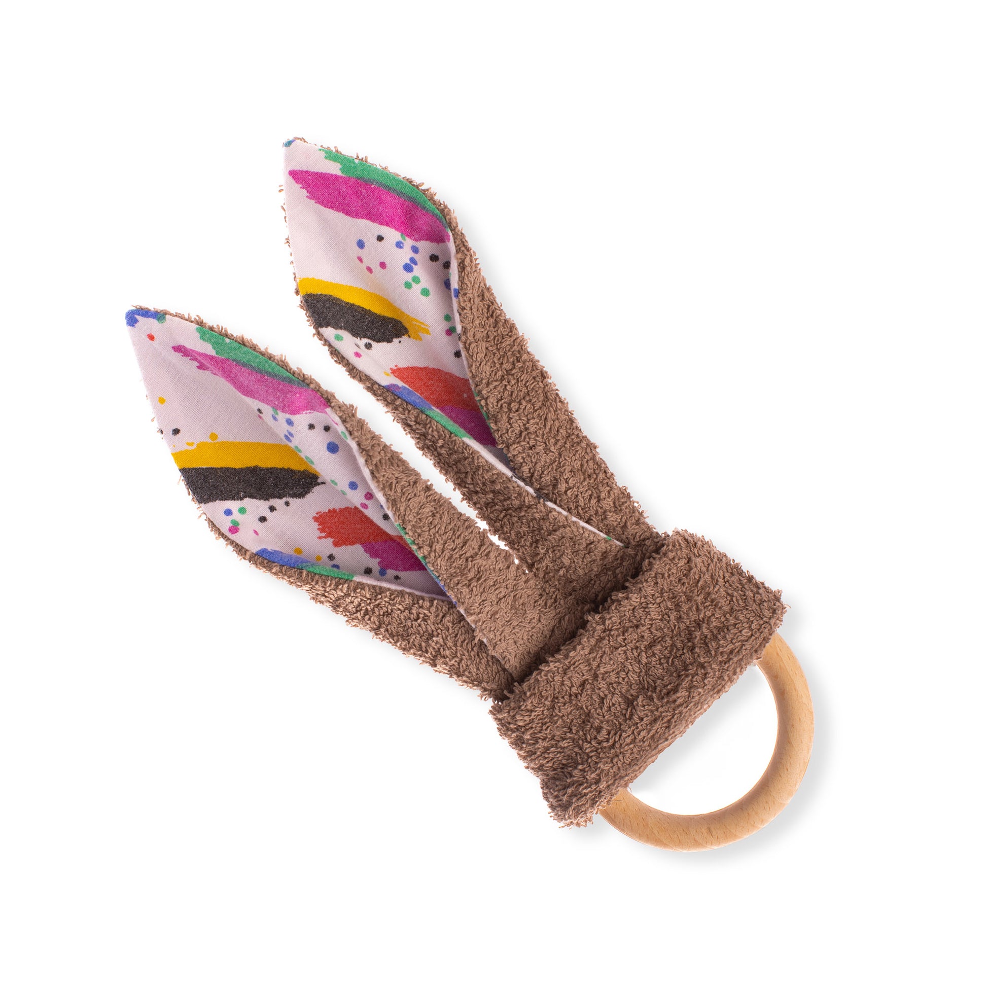 Die süßen Knister Hasenohr-Greiflinge aus Bio-Baumwolle haben kunterbunte Upcycling Details aus Omis alter Bettwäsche, dadurch ist jedes ein Unikat. Made in Germany - alle Knisterohren haben wir in unserer soki Manufaktur in Kassel mit viel Liebe für euch genäht. Der unbehandelte Holzring stammt aus einer Drechslerei in Österreich, die ihr Holz aus streng kontrollierter, ökologischer Waldwirtschaft bezieht und PEFC™sowie FSC® zertifiziert ist. Zur Reinigung können die Ohren von dem Holzring ab geknotet werden und sind bei bis zu 60 Grad waschbar. Maße Holzring: 70 mm Ø Maß insgesamt 22 x 12 cm Rohstoff: 100% Baumwolle (Bio-Baumwolle und Upcycling Details aus Omis alter Bettwäsche)
