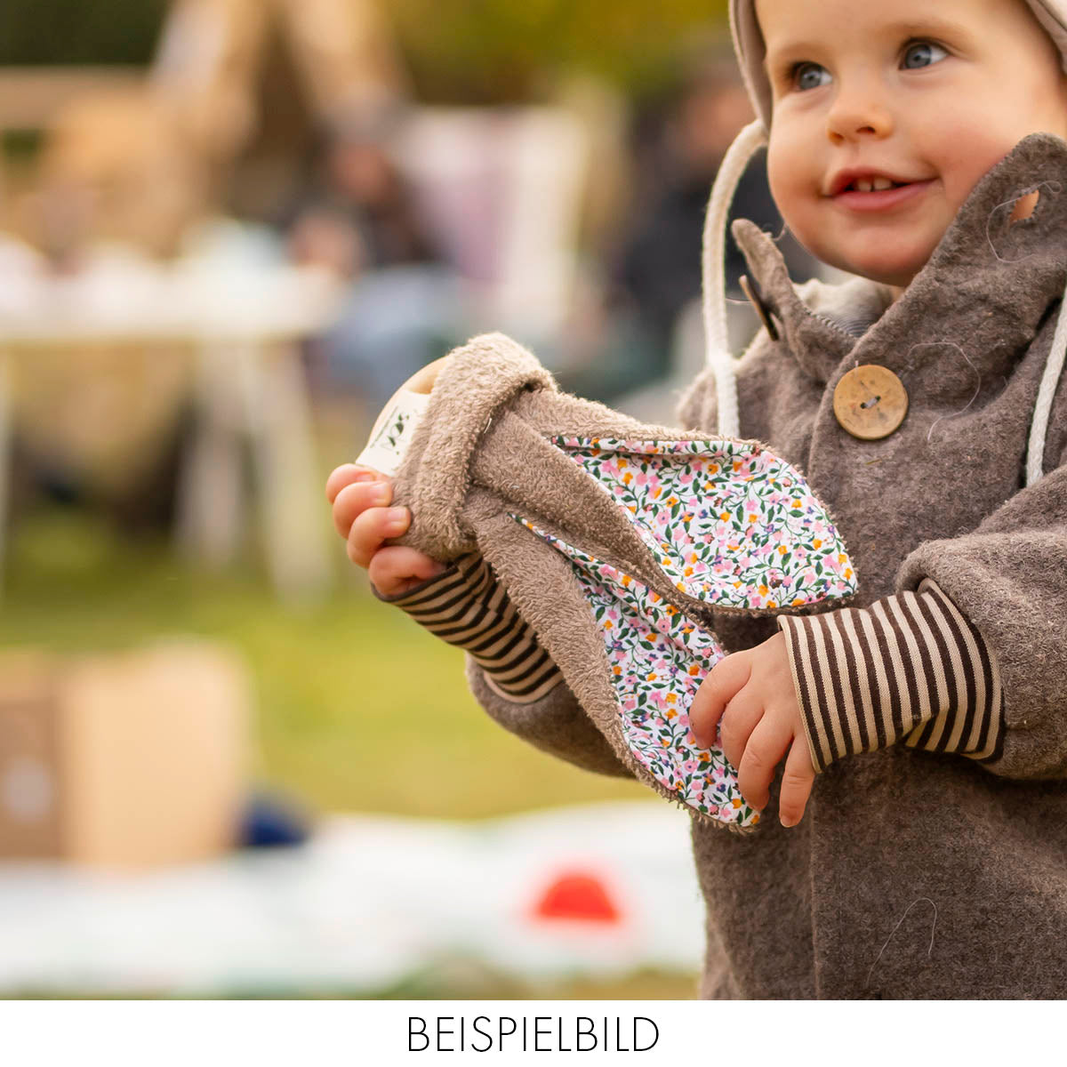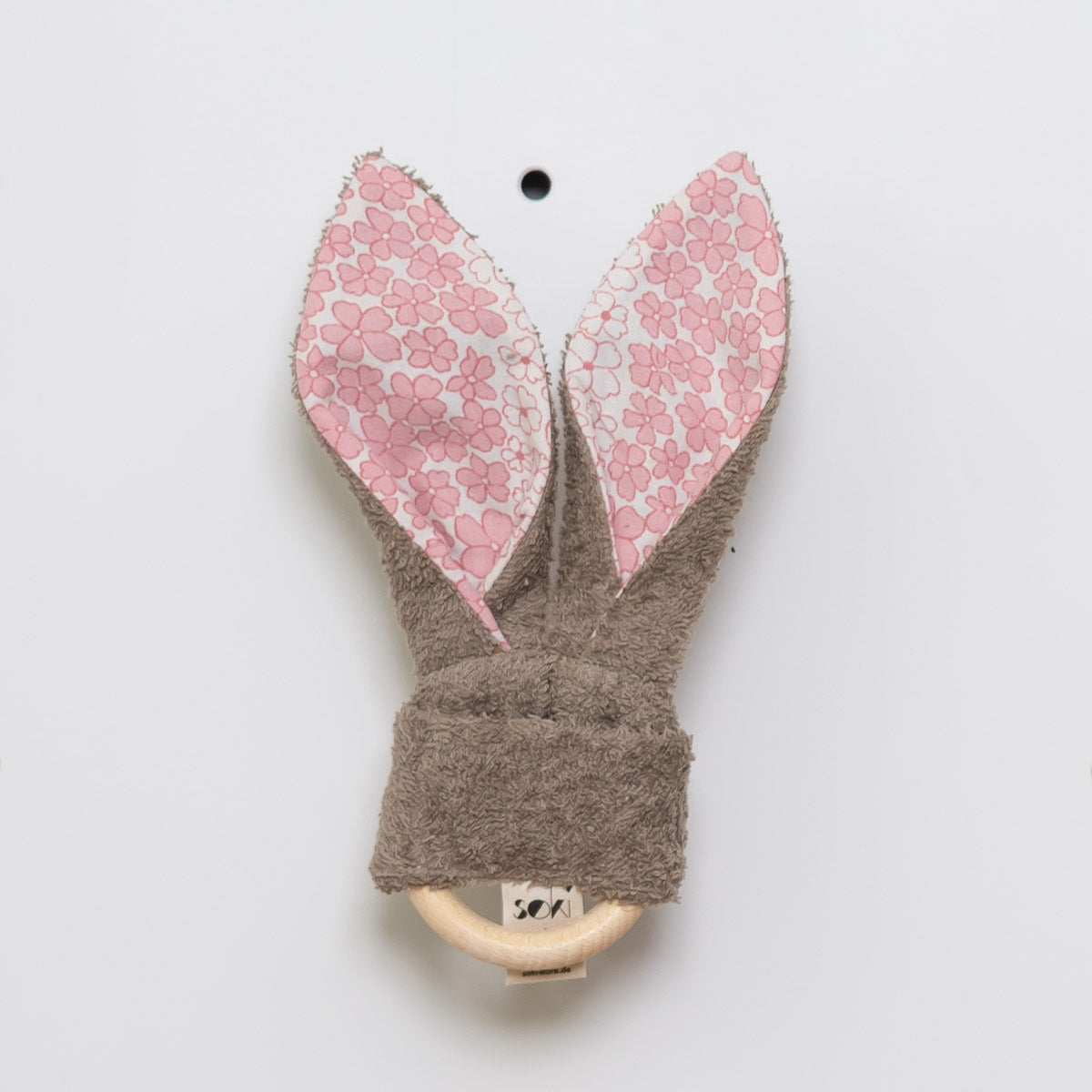 Zur Reinigung können die Ohren von dem Holzring ab geknotet werden und sind bei bis zu 60 Grad waschbar. Maße Holzring: 70 mm Ø Maß insgesamt 22 x 12 cm Rohstoff: 100% Baumwolle (Bio-Baumwolle und Upcycling Details aus Omis alter Bettwäsche)
